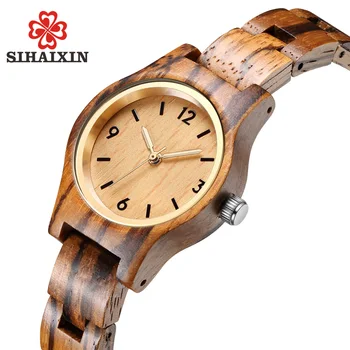 SIHAIXIN small zebra wood quartz wrist watch for women analog simple vintage unique sandal wooden band ladies watches